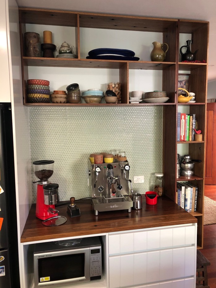 The Coffee nook was one challenge that took a lot of time from re-sawing hardwood beams and turning them into this great coffee station. There was challenges to overcome but we got the desired look in the end.